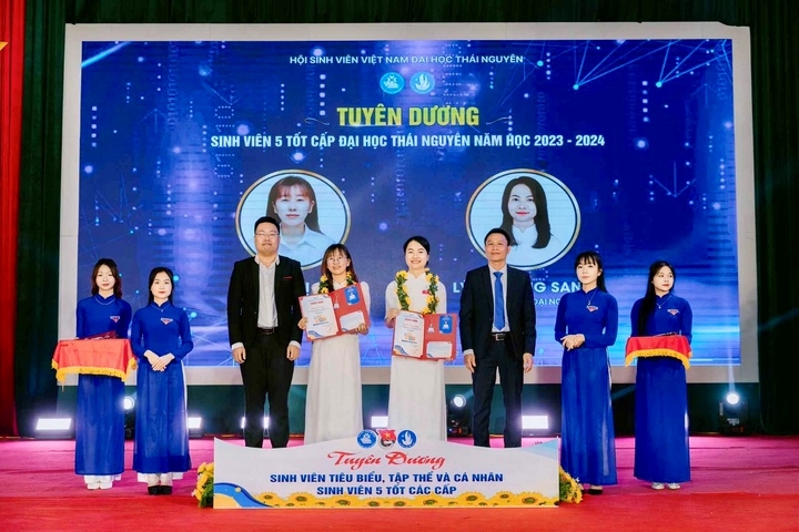 Hạng Thị Sinh nhận giấy khen Tuyên dương Sinh viên 5 tốt cấp Đại học tại trung tâm Hội nghị, ĐH Thái Nguyên, năm học 2023 - 2024. |