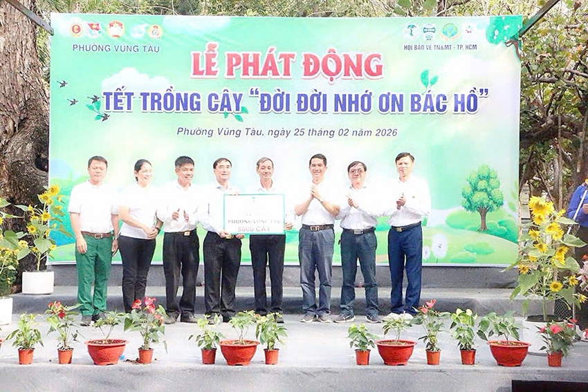 Trước đó, ngày 25-2 (mồng 9 Tết Bính Ngọ), tại Công viên Thống Nhất – Lê Lai, phường Vũng Tàu, Ủy ban MTTQ Việt Nam phường Vũng Tàu phối hợp với Hội Bảo vệ Thiên nhiên và Môi trường TP Hồ Chí Minh cùng các đơn vị tài trợ tổ chức lễ phát động “Tết trồng cây đời đời nhớ ơn Bác Hồ” – Xuân Bính Ngọ 2026.