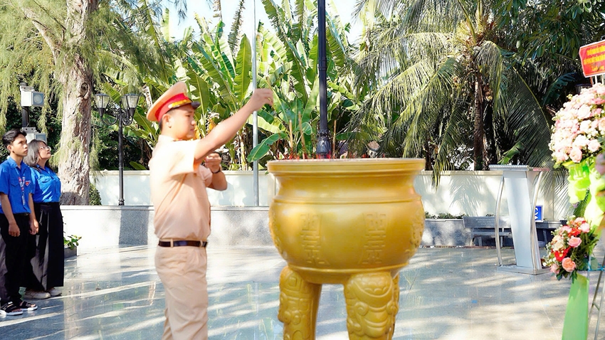 | Đại diện Đoàn Phòng PC08 dâng hương tại nhà lưu niệm Anh Hùng liệt sĩ Võ Thị Sáu |