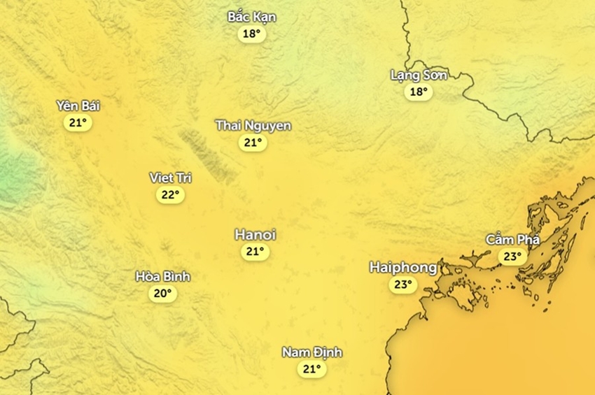 Trong mấy ngày như trên, nhiệt độ cảm nhận buổi sáng sớm ở Hà Nội dự báo sẽ xuống dưới 20oC. Riêng sáng sớm 4/11, nhiệt độ Hà Nội có thể xuống đến mức 17oC, là mức rét, và nếu vậy thì đó sẽ là lần đầu tiên có mức nhiệt độ 17oC ở Hà Nội trong mùa Thu - Đông 2025.