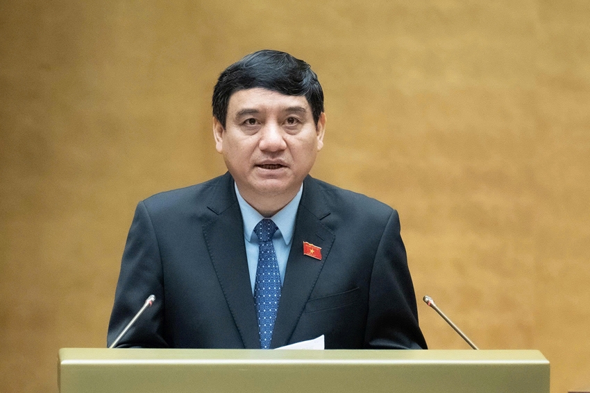 | Chủ nhiệm Ủy ban Văn hóa và Xã hội Nguyễn Đắc Vinh trình bày báo cáo thẩm tra. Ảnh: Quốc hội |