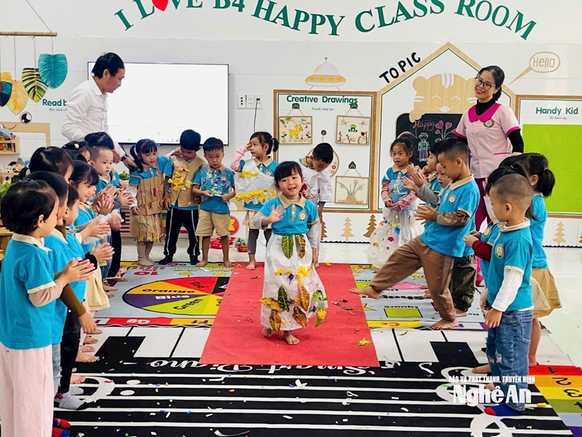 | Giờ học của học sinh Trường mầm non Quỳnh Vinh A. Ảnh: PV |