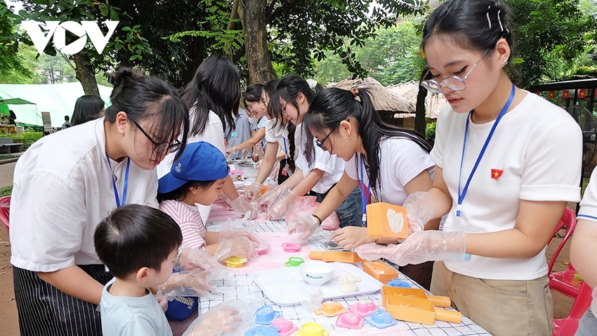 Trải nghiệm làm bánh nướng bánh dẻo trong Chương trình “Tết Trung thu 2025 - Vui cùng trẻ thơ” tại Bảo tàng Dân tộc học Việt Nam. |